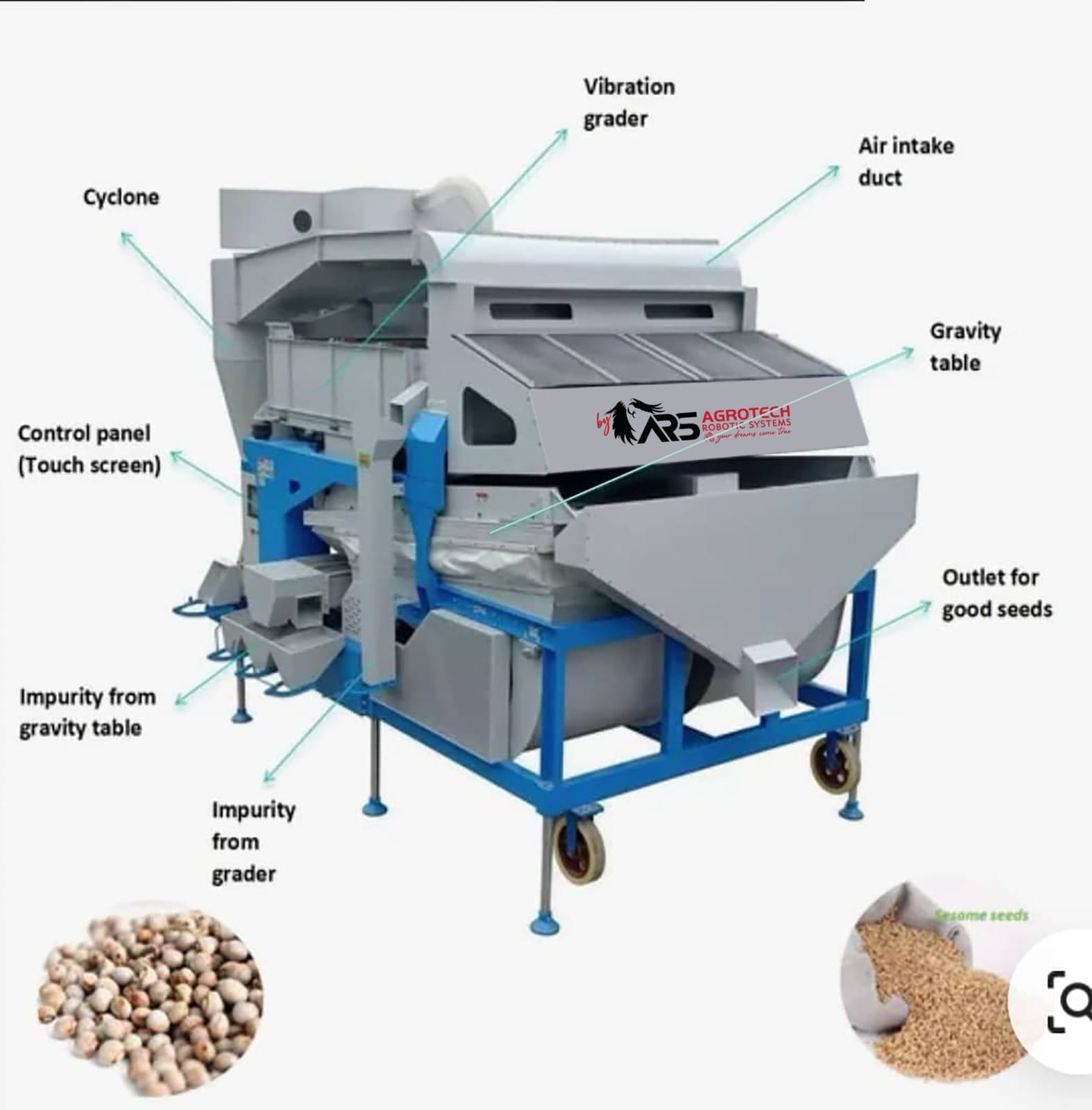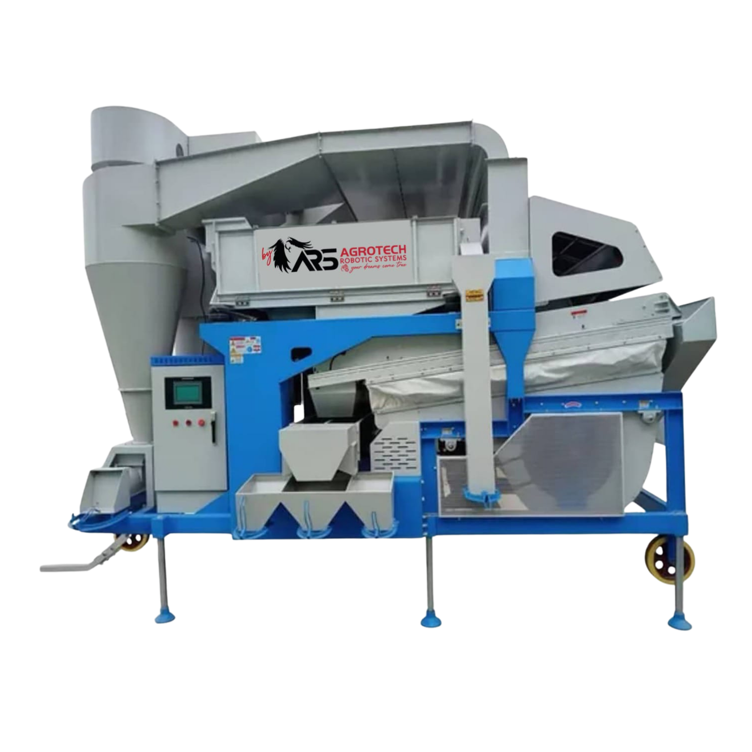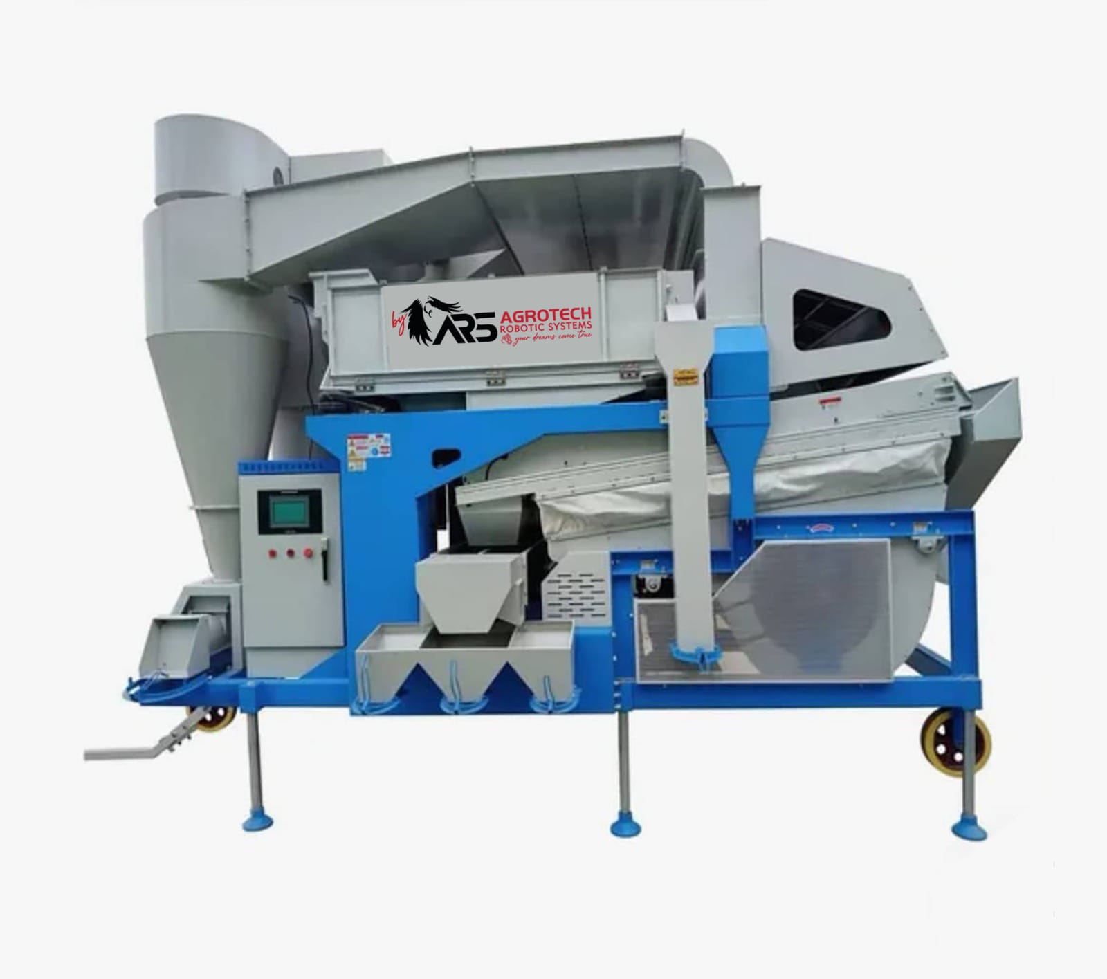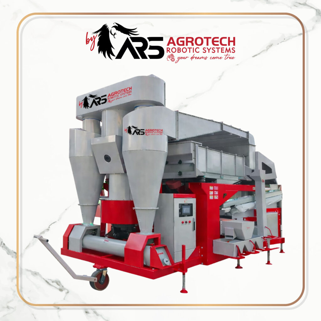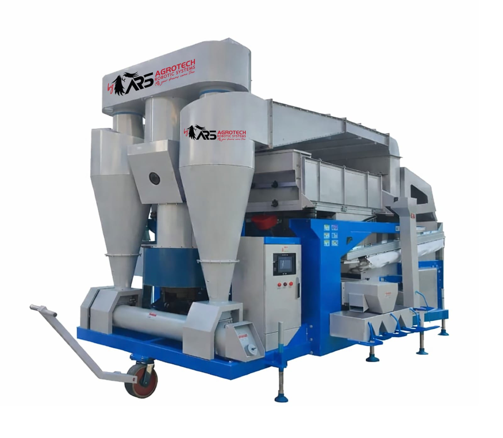 ARS-5X ALFA PLUS آلة صناعية عالية السعة لتنظيف البذور والحبوب، تجمع التنظيف الأولي والغربلة الدقيقة وفصل الوزن النوعي ضمن تصميم مدمج واحد.